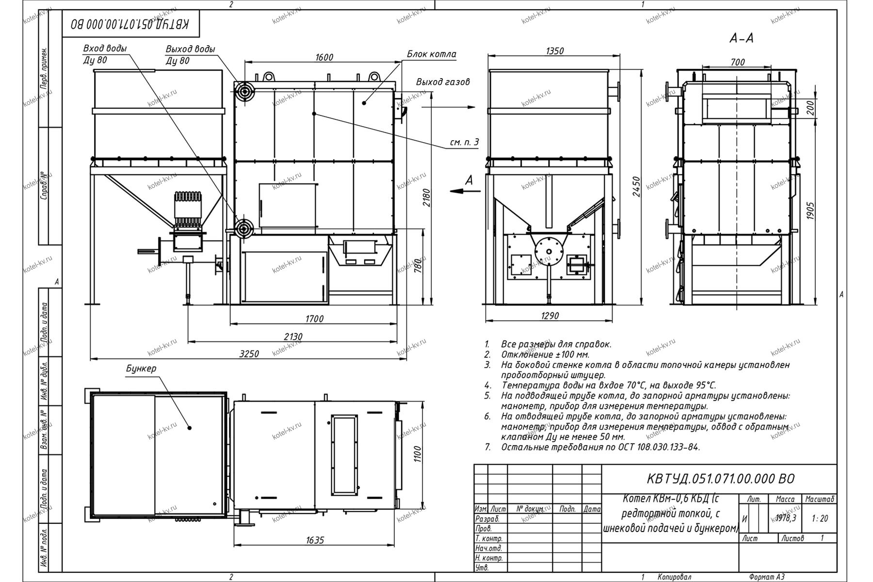Конструкция котельной установки состоит из бункера для пеллетного котла, шнекового питателя, вихревой топки, котельного блока с конвективными пакетами.